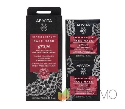 La mascarilla facial con uva, rica en oligoelementos, es uno de los secretos de longevidad en las regiones mediterráneas. Ofrece un efecto antioxidante y antiedad al instante. El aceite de uva ayuda a suavizar la apariencia de las arrugas y mejora la firmeza de la piel. El aceite de oliva, la coenzima Q10, la vitamina E, el ácido hialurónico y el pantenol hidratan la piel mejorando su elasticidad. El aceite esencial de pachulí regenera la piel madura. El agua se ha sustituido por una infusión de té de montaña griego con acción antioxidante.