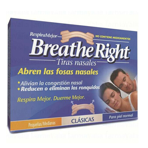 Tiras transparentes para piel sensible.\r\n\r\nLas tiras nasales transparentes ofrecen lo mismo que las clásicas, pero están especialmente diseñadas para personas que tienen la piel sensible o son más discretas. Breathe Right, todas las noches.\r\n\r\nLa congestión nasal nocturna tiene una repercusión directa con tu estado de ánimo a lo largo del día. Como consecuencia, tu rendimiento y tu estado de ánimo se ven afectados. Si sufres de congestión nasal ya sea por un resfriado, alergia o una desviación del tabique nasal, Breathe Right es la solución. Cada tira nasal, sin medicamento, te puede ayudar a respirar mejor, dormir mejor, y sentirte mejor. Breathe Right puede ayudarte a disminuir:\r\n