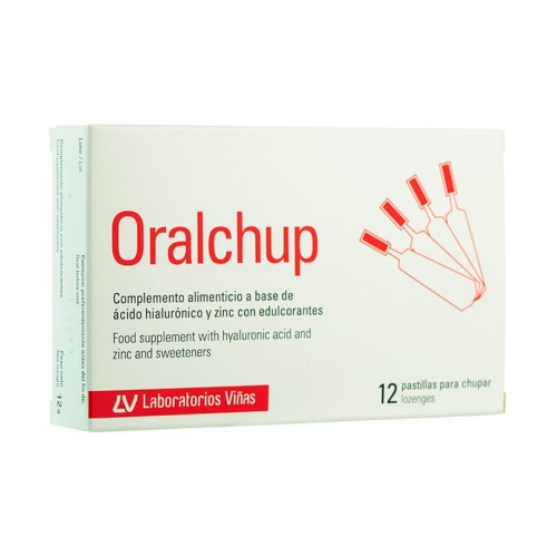 Oralchup es un complemento alimenticio a base de ácido hialurónico y zinc con edulcorantes.\r\n\r\nEl zinc contribuye al funcionamiento normal del sistema inmune y al mantenimiento de la piel en condiciones normales, al proceso de división celular y a la protección de las células frente al daño oxidativo.\r\n\r\nEl ácido hialurónico es el componente principal de la sustancia fundamental del tejido conectivo.\r\n\r\nTodos los consumidores, y en particular los niños y adolescentes, es importante que sigan una alimentación equilibrada y sana para que proporcione los nutrientes necesarios para el funcionamiento y crecimiento normal del organismo.\r\n\r\nOralchup se presenta en forma de pastilla para chupar y disolver en la boca, con un soporte plástico para evitar que se trague de golpe la pastilla y conseguir en cambio que al succionarla actúe lentamente. El buen sabor ayuda a hacerlo más apetecible.\r\n\r\nChupar la pastilla hasta que se disuelva completamente en la boca sin tragarla de golpe. Se recomiendan un mínimo de 3 pastillas al día hasta un máximo de 8 pastillas al día. No superar estas dosis. No recomendado en niños menores de 3 años.