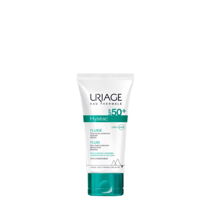 HYSEAC Fluido SPF50+ combina una eficaz protección solar con una serie de propiedades muy adecuadas para las pieles mixtas a grasas. Proporciona una protección muy alta contra las radiaciones UVA-UVB gracias a un nuevo complejo filtrante muy eficaz, presenta una textura no grasa, no pegajosa.